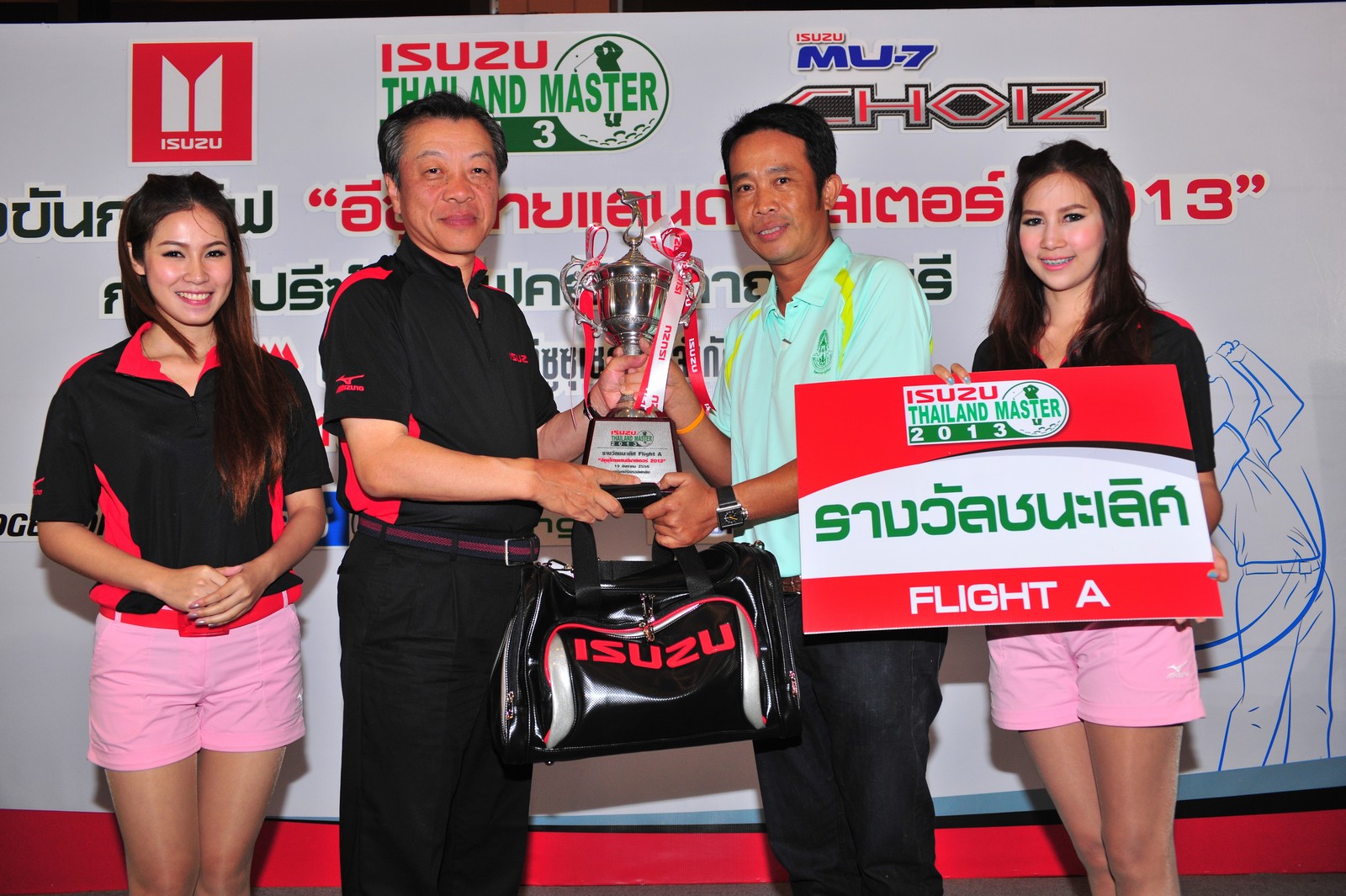 คุณวิชัย สินอนันต์พัฒน์ กรรมการ บริษัท ตรีเพชรอีซูซุเซลส์ จำกัด เป็นประธานในพิธีมอบรางวัลการแข่งขัน “อีซูซุไทยแลนด์มาสเตอร์ 2013” รอบคัดเลือกสนามที่ 4 ณ เรดเม้าท์เทนกอล์ฟคลับ จังหวัดภูเก็ต ให้แก่คุณปกิต ประพฤติงาม ผู้พิชิตรางวัลพิเศษ Hole-in One หลุม 17 Signature ได้รับรถยนต์นั่งอเนกประสงค์ อีซูซุ มิว-เซเว่น ช้อยส์ มูลค่า 1.3 ล้านบาท พร้อมมอบรางวัลให้แก้ผู้ชนะเลิศในแต่ละไฟลท์ซึ่งได้รับสิทธิ์ร่วมชิงชัยในสนามสุดท้าย เพื่อลุ้นรางวัลแพ็คเกจบินลัดฟ้าไปโชว์วงสวิง ณ ประเทศเวียดนาม ปลายปีนี้