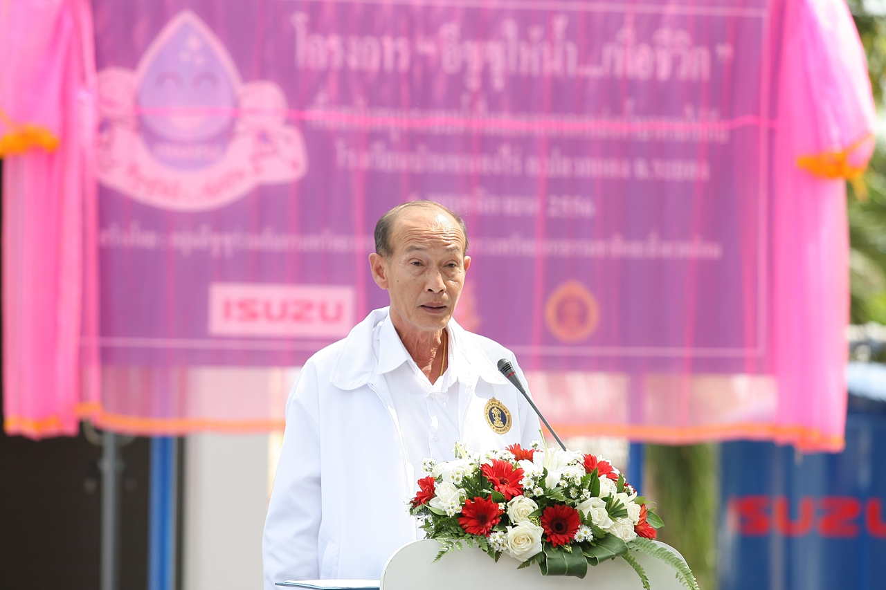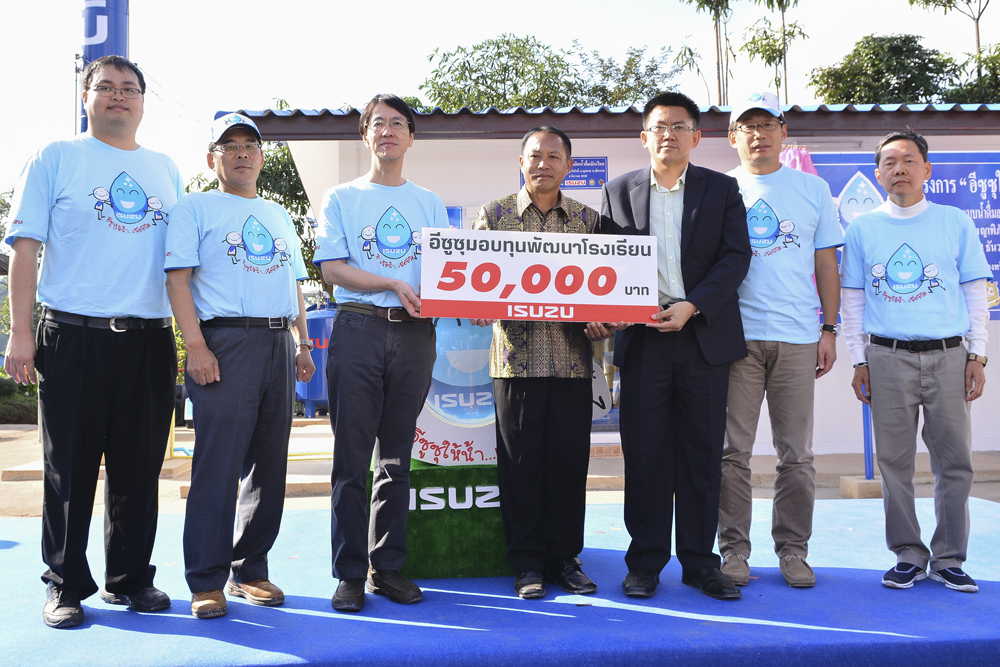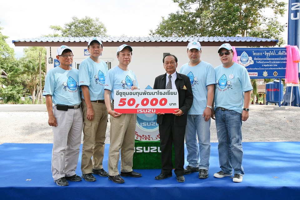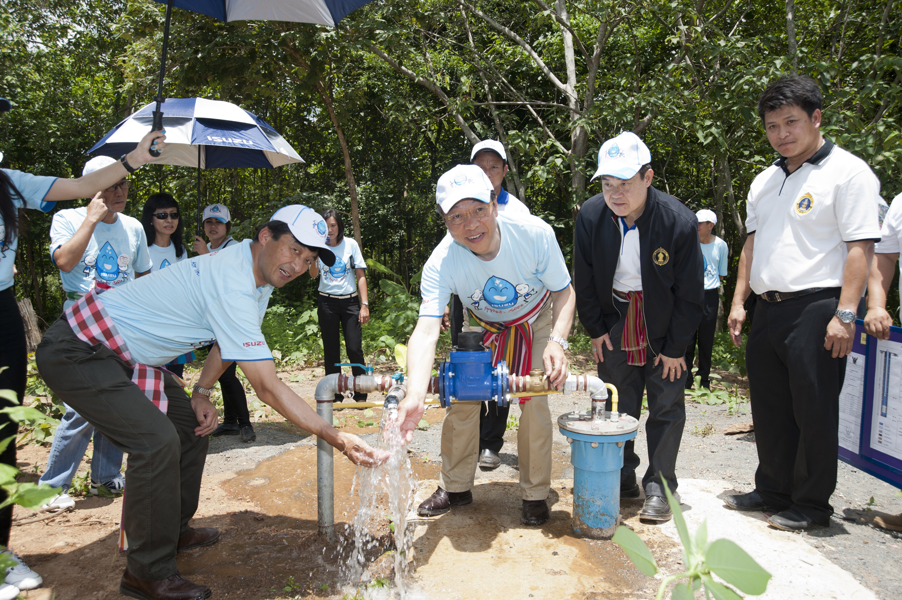 กลุ่มอีซูซุในประเทศไทยนำโดยมร. เอช. นาคางาวะกรรมการผู้จัดการบริษัทตรีเพชรอีซูซุเซลส์จำกัดและมร. เอ็ม. โอคุโบะรองกรรมการผู้จัดการบริษัทอีซูซุมอเตอร์(ประเทศไทย) จำกัดพร้อมด้วยคุณสัมฤทธิ์ชุษณะทัศน์รองอธิบดีกรมทรัพยากรน้ำบาดาลกระทรวงทรัพยากรธรรมชาติและสิ่งแวดล้อมร่วมส่งมอบระบบน้ำดื่มสะอาดแบบครบวงจรที่ได้จัดสร้างขึ้นตามโครงการ“อีซูซุให้น้ำ…เพื่อชีวิต”ให้สถานศึกษาที่ขาดแคลนน้ำเป็นแห่งที่ 5 ณโรงเรียนบ้านหนองไร่อำเภอปลวกแดงจังหวัดระยอง