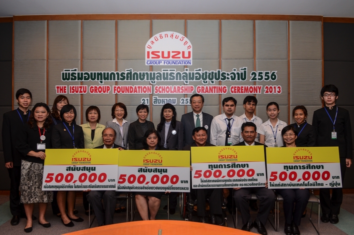 กลุ่มอีซูซุในประเทศไทย โดย มร.ฮิโรชิ นาคางาวะ ประธานมูลนิธิกลุ่มอีซูซุและกรรมการผู้จัดการ บริษัท ตรีเพชรอีซูซุเซลส์ จำกัด จัดพิธีมอบทุนการศึกษาประจำปี 2556 แก่เยาวชนที่เรียนดีและมีจิตสาธารณะต่อส่วนรวมจากสถาบันการศึกษาทั่วประเทศ จำนวน 694 ทุน รวมมูลค่า 4,950,000 บาท เพื่อสานต่อปณิธาน “อีซูซุเคียงคู่สังคมไทย” ณ อาคารตรีเพชรอีซูซุเซลส์ ถนนวิภาวดีรังสิต