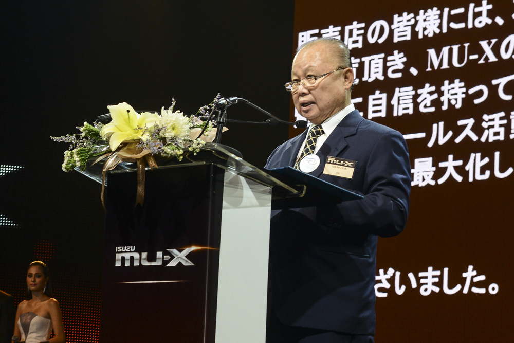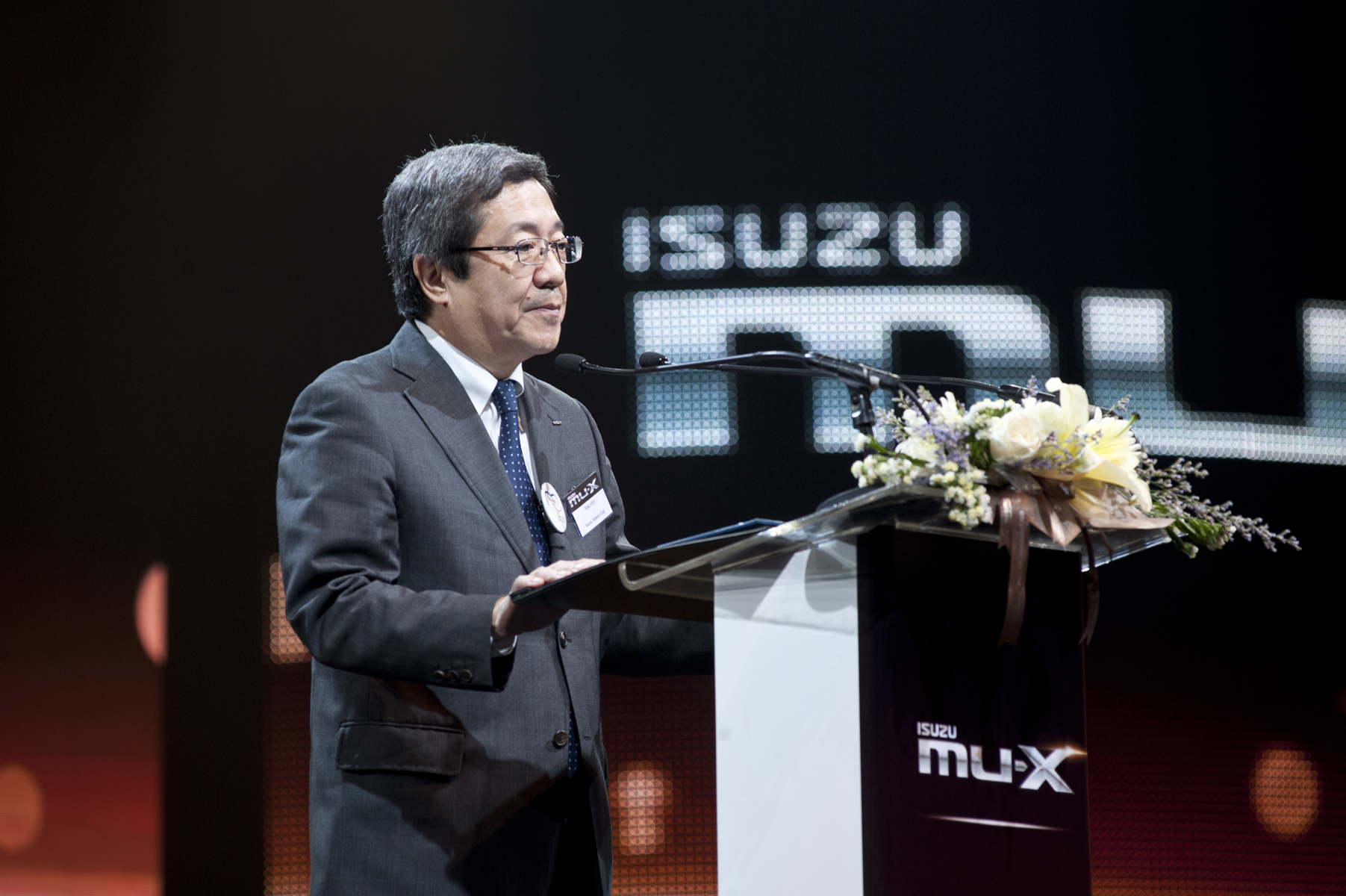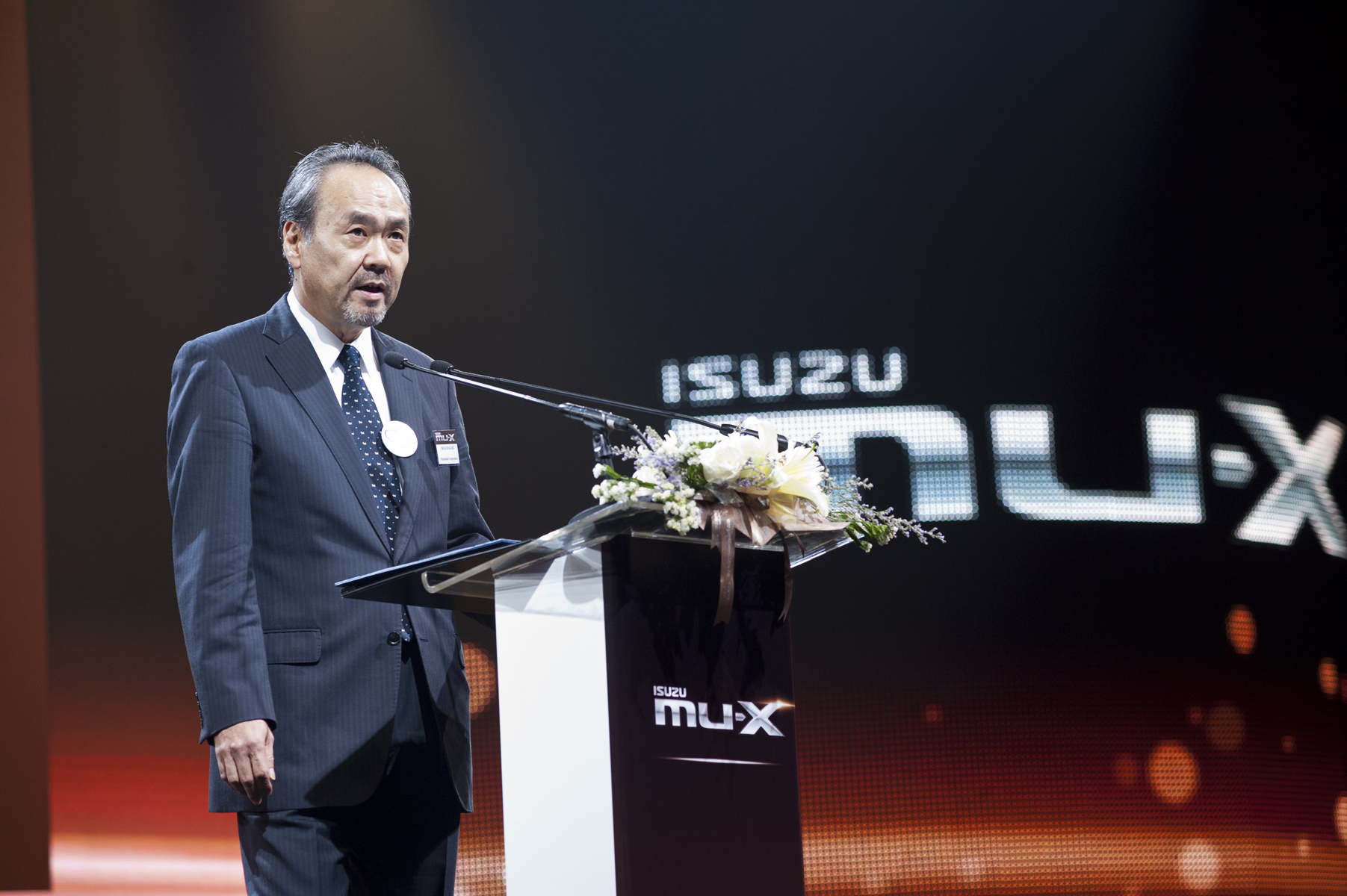มร. ฮิโรชิ นาคางาวะ กรรมการผู้จัดการ บริษัท ตรีเพชรอีซูซุเซลส์ จำกัด เผยว่า “อีซูซุได้คิดค้นและพัฒนายนตรกรรมอเนกประสงค์ที่สอดคล้องกับความต้องการ และไลฟ์สไตล์ของผู้ใช้รถทั้งชาวไทยและทั่วโลก นั่นคือ “อีซูซุมิว–เอ็กซ์” ยนตรกรรมสุดหรูอันทรงคุณค่า สร้างปรากฏการณ์ใหม่แห่งรูปลักษณ์โฉบเฉี่ยวทันสมัย สมรรถนะเหนือชั้น พร้อมอรรถประโยชน์มากมาย พร้อมกันนี้ยังได้เปิดตัว “คุณก้อง–สหรัถ สังคปรีชา” ศิลปินผู้มากความสามารถในฐานะพรีเซ็นเตอร์ของ “อีซูซุมิว–เอ็กซ์” เพื่อสะท้อนภาพลักษณ์ของยนตรกรรมหรูระดับผู้นำสำหรับกลุ่มผู้ใช้รถรุ่นใหม่ที่พร้อมจะค้นหาสิ่งใหม่ๆ ให้กับตัวเองได้เป็นอย่างดี”