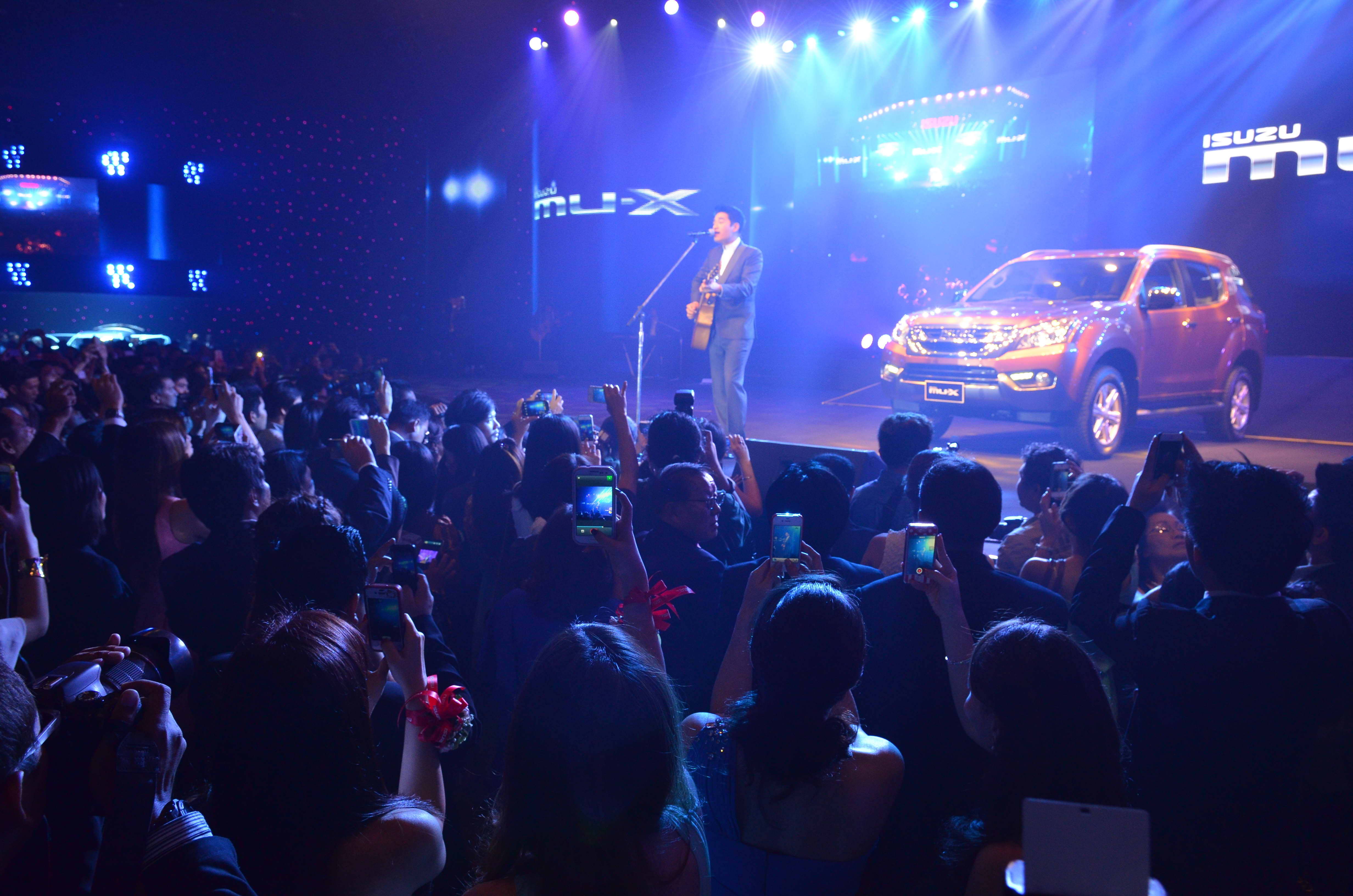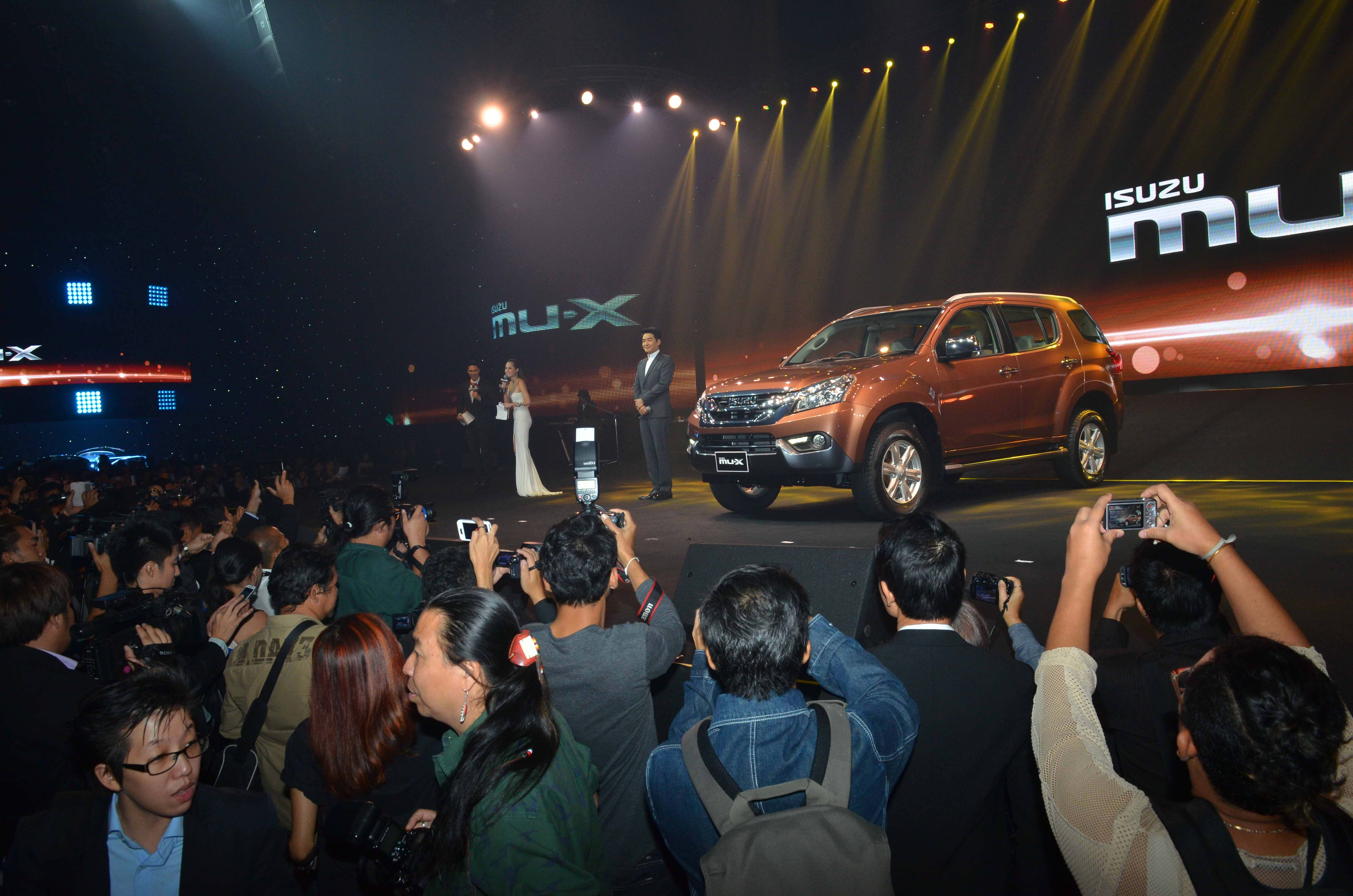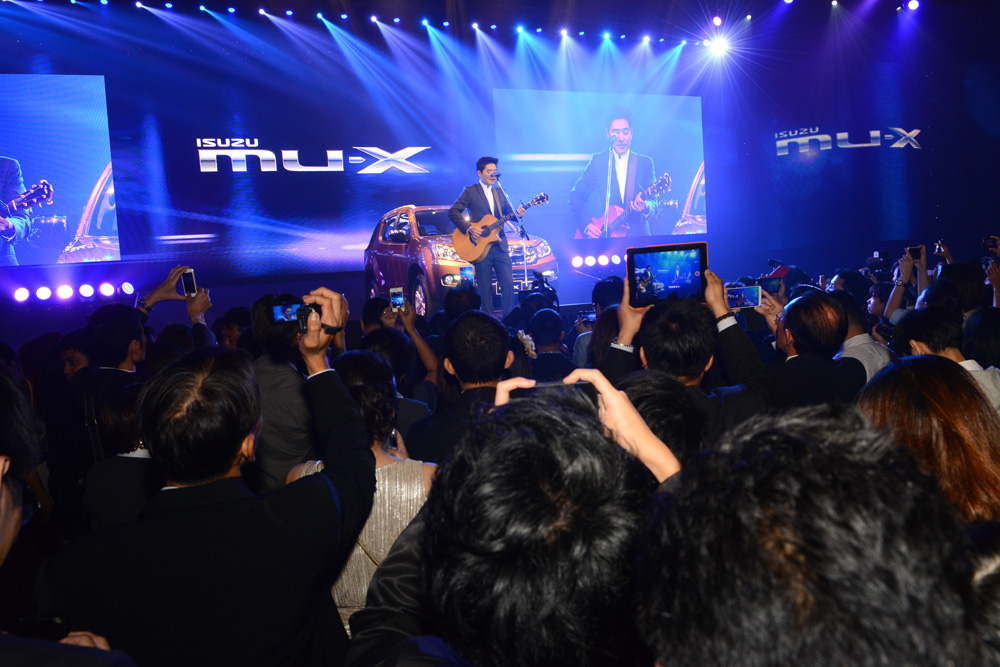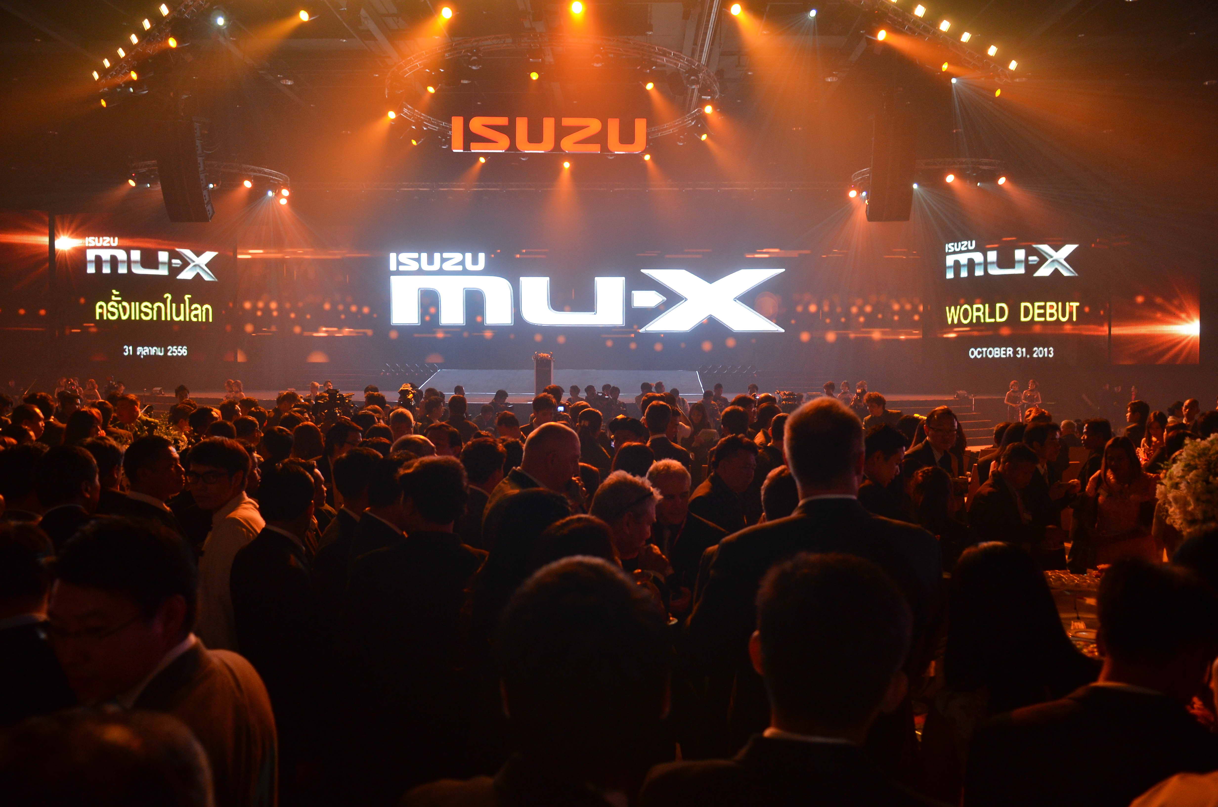 งานเปิดตัวจัดขึ้นอย่างยิ่งใหญ่อลังการ ณ รอยัล พารากอนฮอลล์ ศูนย์การค้าสยามพารากอน ท่ามกลางสมาชิกประชาคมอีซูซุจากประเทศไทยและต่างประเทศที่มาร่วมงานอย่างเนืองแน่นมากกว่า 2,000 คนด้วยความตั้งใจที่จะยลโฉม “อีซูซุมิว–เอ็กซ์” ยนตรกรรมหรูรุ่นล่าสุดที่สามารถสร้างกระแสความร้อนแรง และยอดจองตั้งแต่ยังไม่เห็นตัวรถจริง ซึ่งการปรากฎโฉมครั้งแรกในโลกที่ประเทศไทยในครั้งนี้ ยังมาพร้อมการเปิดตัวพรีเซ็นเตอร์สุดหล่อ “ก้อง–สหรัถ สังคปรีชา” ที่เรียกเสียงฮือฮาลั่นฮอลล์ โดย “คุณก้อง–สหรัถ” ได้เตรียมเพลงพร้อมเสียงหวานๆมามอบให้กับผู้ร่วมงาน โดยเฉพาะเพลง “Best in me” ซึ่งเป็นเพลงประกอบภาพยนตร์โฆษณา รวมทั้งยังได้เชิญแขกพิเศษ คุณแอน ทองประสม นางเอกสาวเจ้าบทบาทมาร่วมสร้างความสุขในโอกาสพิเศษนี้ด้วย