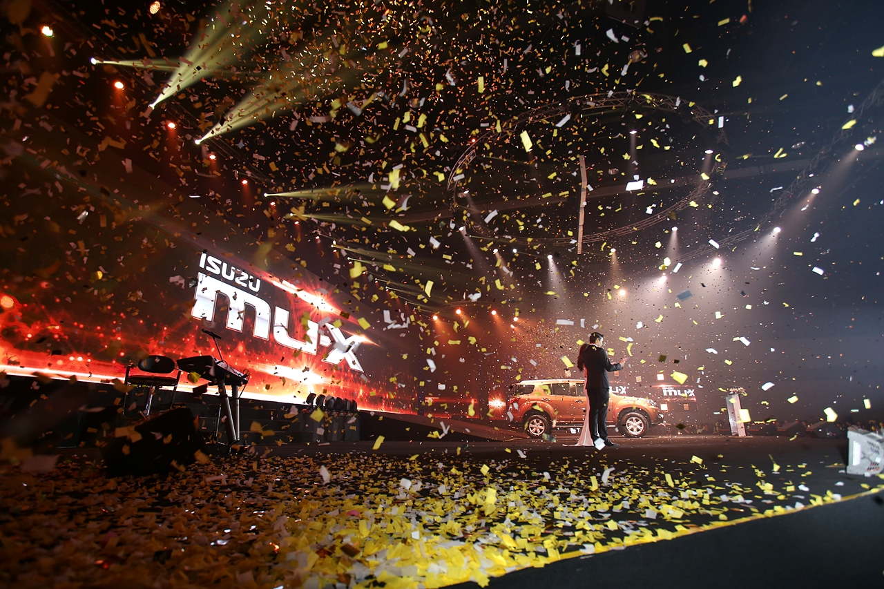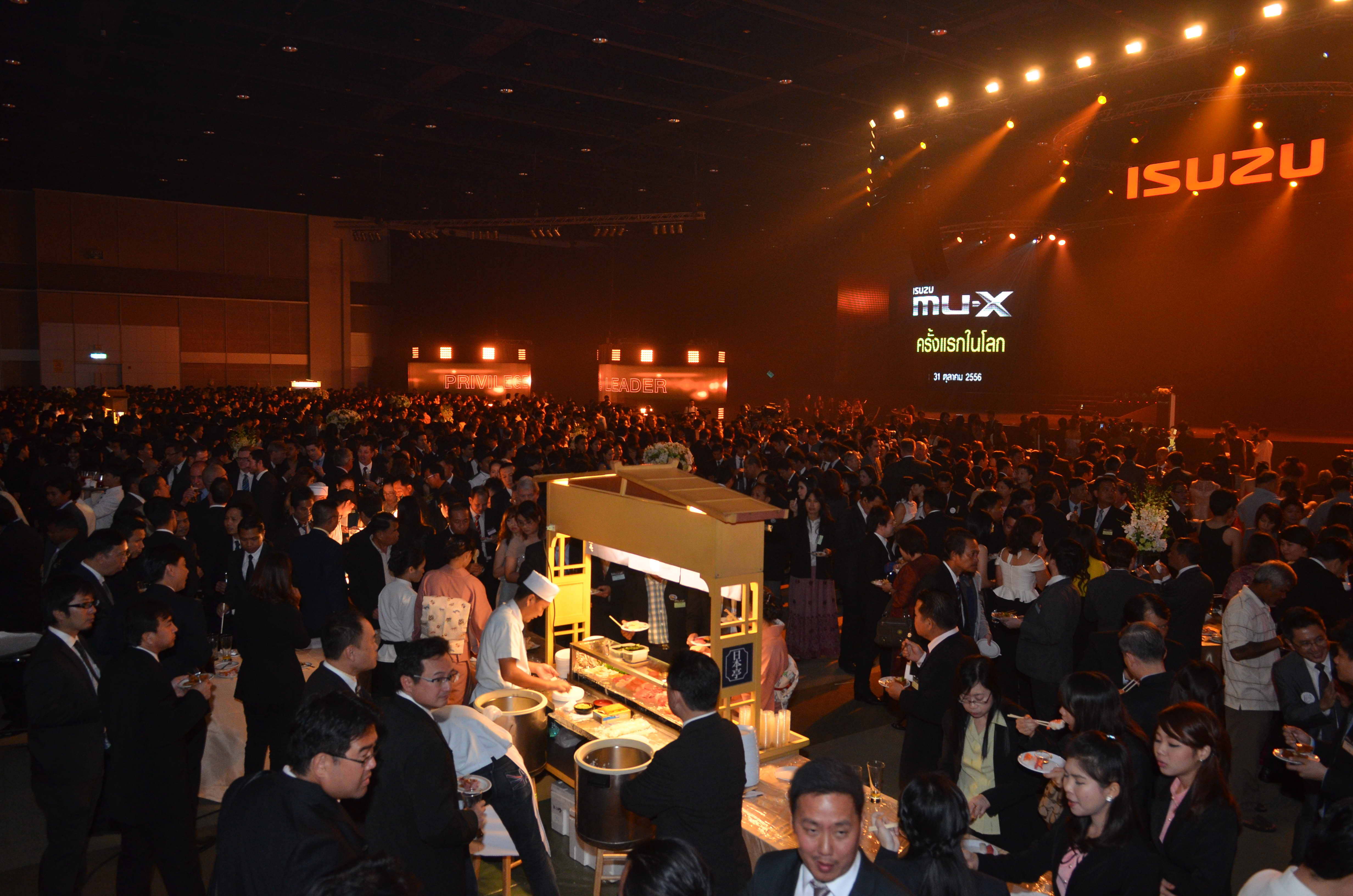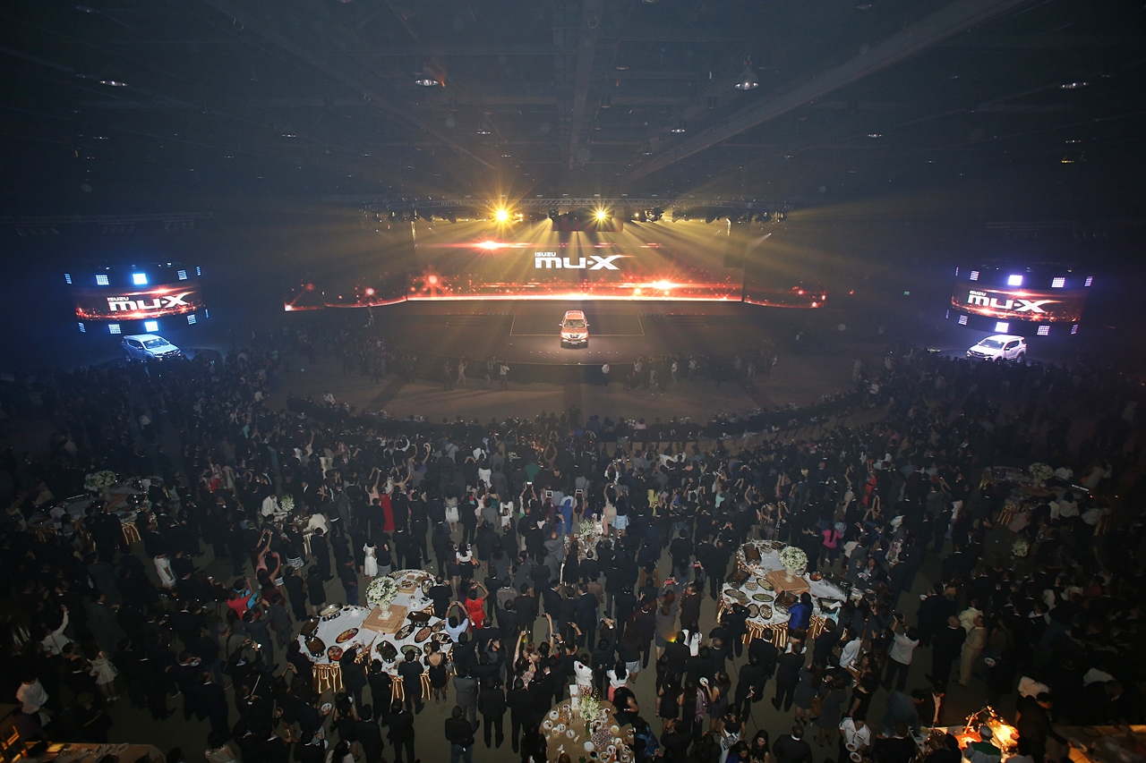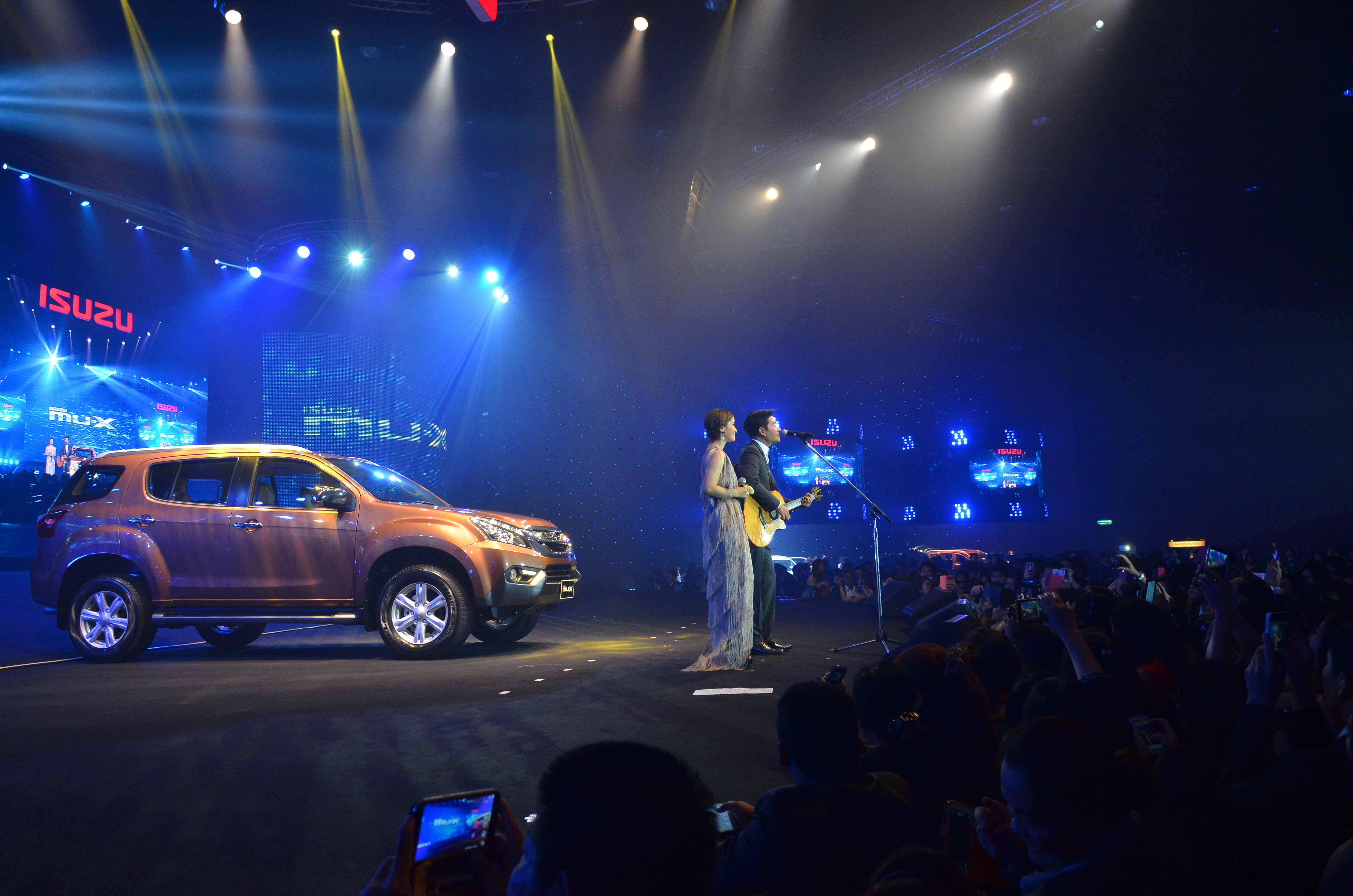งานเปิดตัวจัดขึ้นอย่างยิ่งใหญ่อลังการ ณ รอยัล พารากอนฮอลล์ ศูนย์การค้าสยามพารากอน ท่ามกลางสมาชิกประชาคมอีซูซุจากประเทศไทยและต่างประเทศที่มาร่วมงานอย่างเนืองแน่นมากกว่า 2,000 คนด้วยความตั้งใจที่จะยลโฉม “อีซูซุมิว–เอ็กซ์” ยนตรกรรมหรูรุ่นล่าสุดที่สามารถสร้างกระแสความร้อนแรง และยอดจองตั้งแต่ยังไม่เห็นตัวรถจริง ซึ่งการปรากฎโฉมครั้งแรกในโลกที่ประเทศไทยในครั้งนี้ ยังมาพร้อมการเปิดตัวพรีเซ็นเตอร์สุดหล่อ “ก้อง–สหรัถ สังคปรีชา” ที่เรียกเสียงฮือฮาลั่นฮอลล์ โดย “คุณก้อง–สหรัถ” ได้เตรียมเพลงพร้อมเสียงหวานๆมามอบให้กับผู้ร่วมงาน โดยเฉพาะเพลง “Best in me” ซึ่งเป็นเพลงประกอบภาพยนตร์โฆษณา รวมทั้งยังได้เชิญแขกพิเศษ คุณแอน ทองประสม นางเอกสาวเจ้าบทบาทมาร่วมสร้างความสุขในโอกาสพิเศษนี้ด้วย