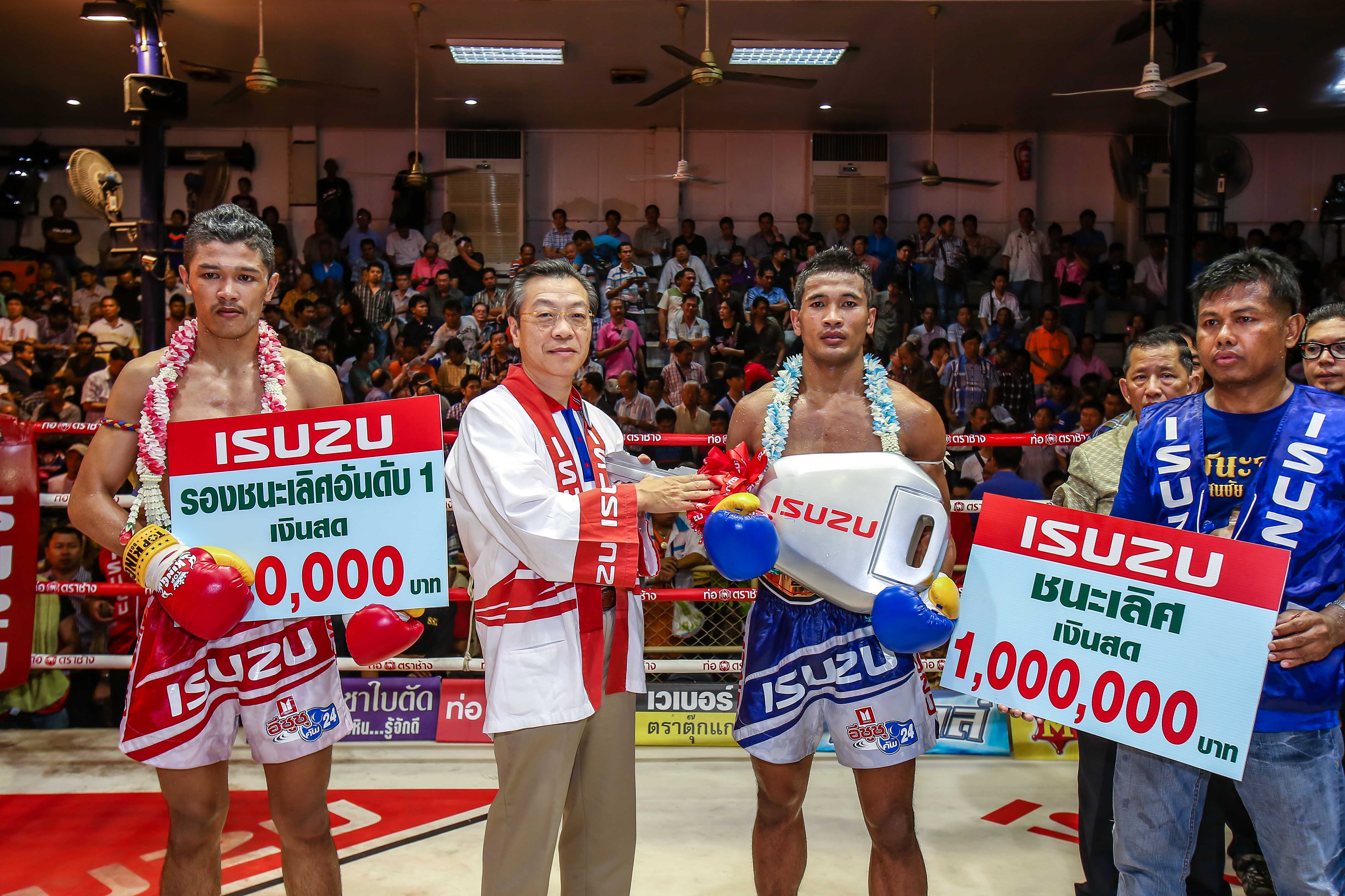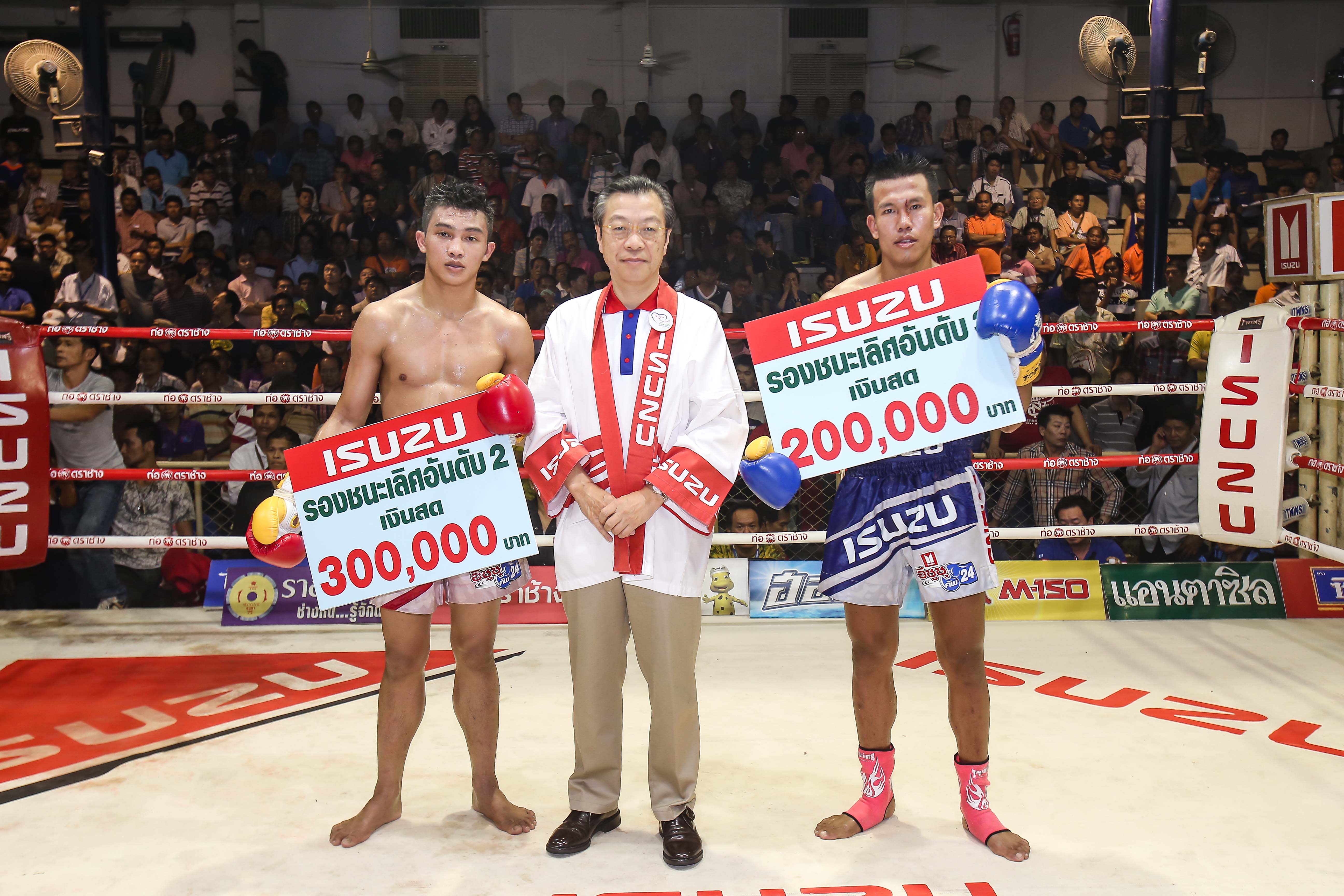 ซูซุร่วมยินดีกับ “ชนะจน พี เค แสนชัยมวยไทย” เฉือนแต้มเอาชนะ “เอกชนะชัย แก้วสัมฤทธิ์” คว้าแชมป์มวยอีซูซุคัพคนล่าสุด รับรถปิกอัพ “อีซูซุดีแมคซ์ สปาร์ค” และรางวัลเงินสด 1 ล้านบาท พร้อมฟิตร่างลงนวมกับ “ไทรโยค พุ่มพันธ์ม่วง” ในศึก “อีซูซุคัพ ซูเปอร์ไฟท์” ในอาทิตย์ที่ 6 เมษายน ศกนี้ เพื่อก้าวสู่สังเวียนผ้าใบระดับโลก “THAI FIGHT 2014” ในฐานะนักชกตัวแทนประเทศไทยปลายปีนี้