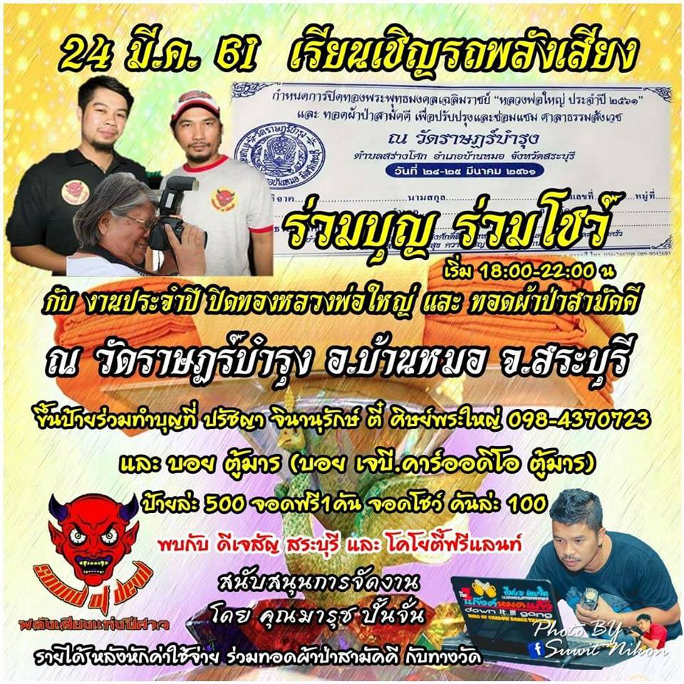 วันที 24 มีนาคม 2561 ร่วมบุญร่วมโชว์ ณ วัดราษฎร์บำรุง อ.บ้านหมอ จ.สระบุรี by ตี๋ ศิษย์พระใหญ่ & บอย ตู้มาร