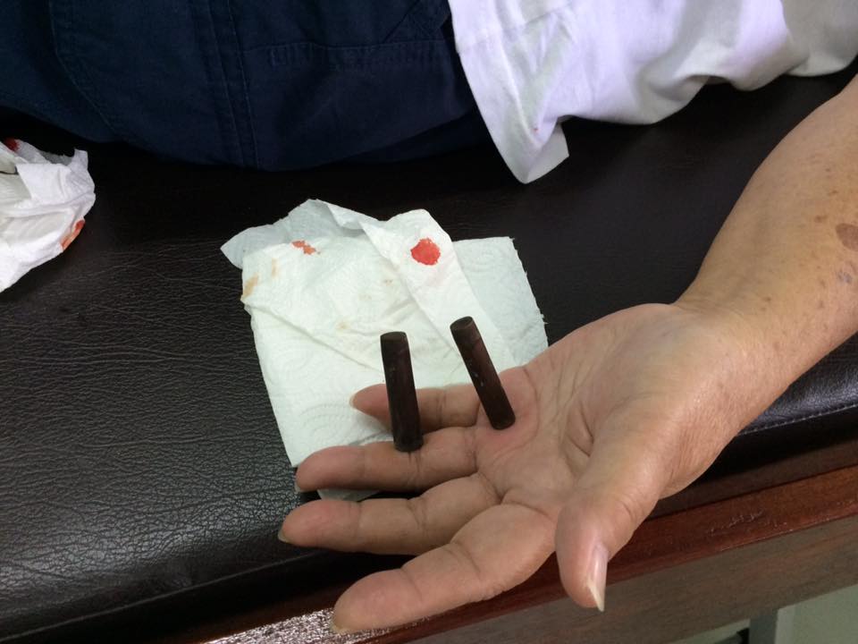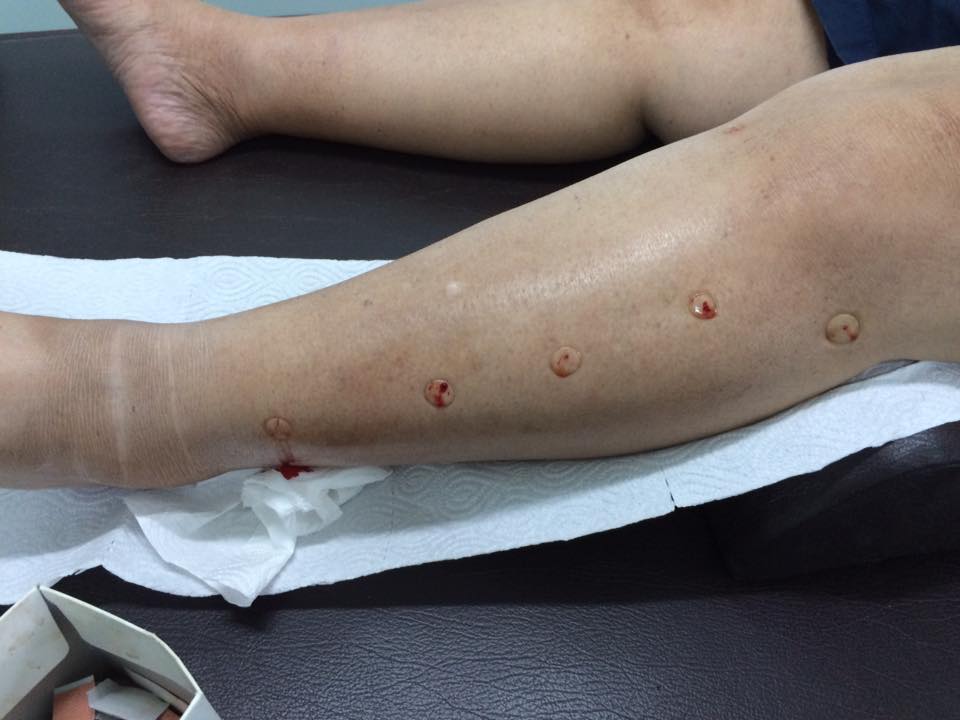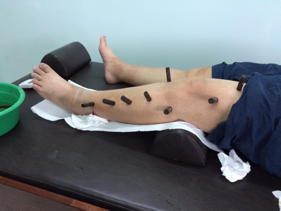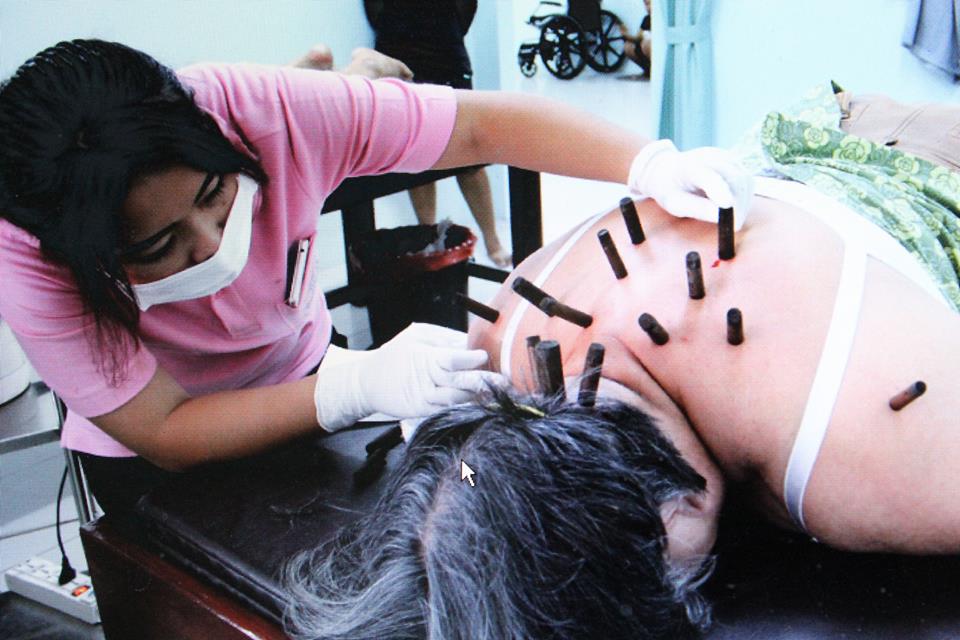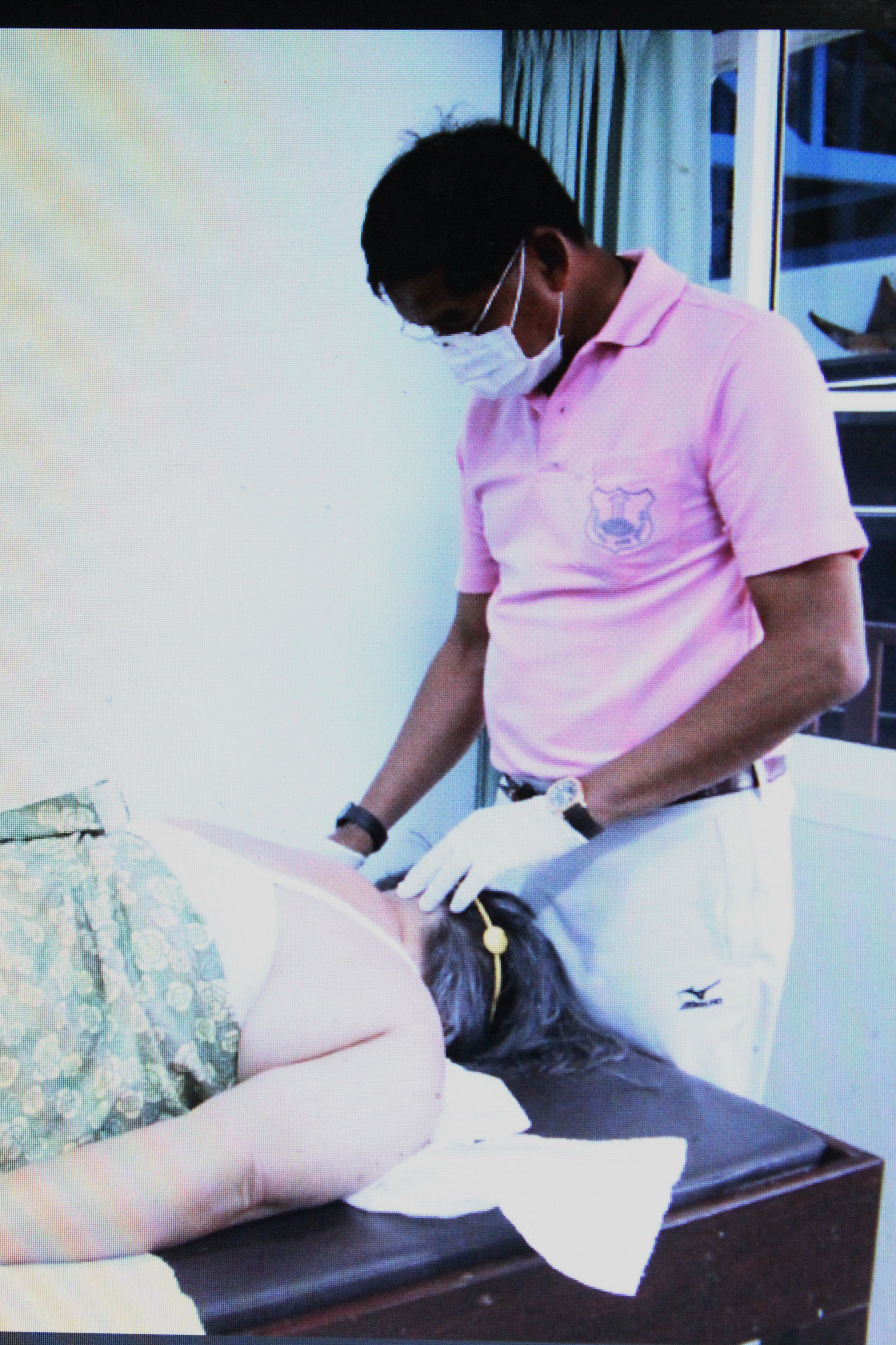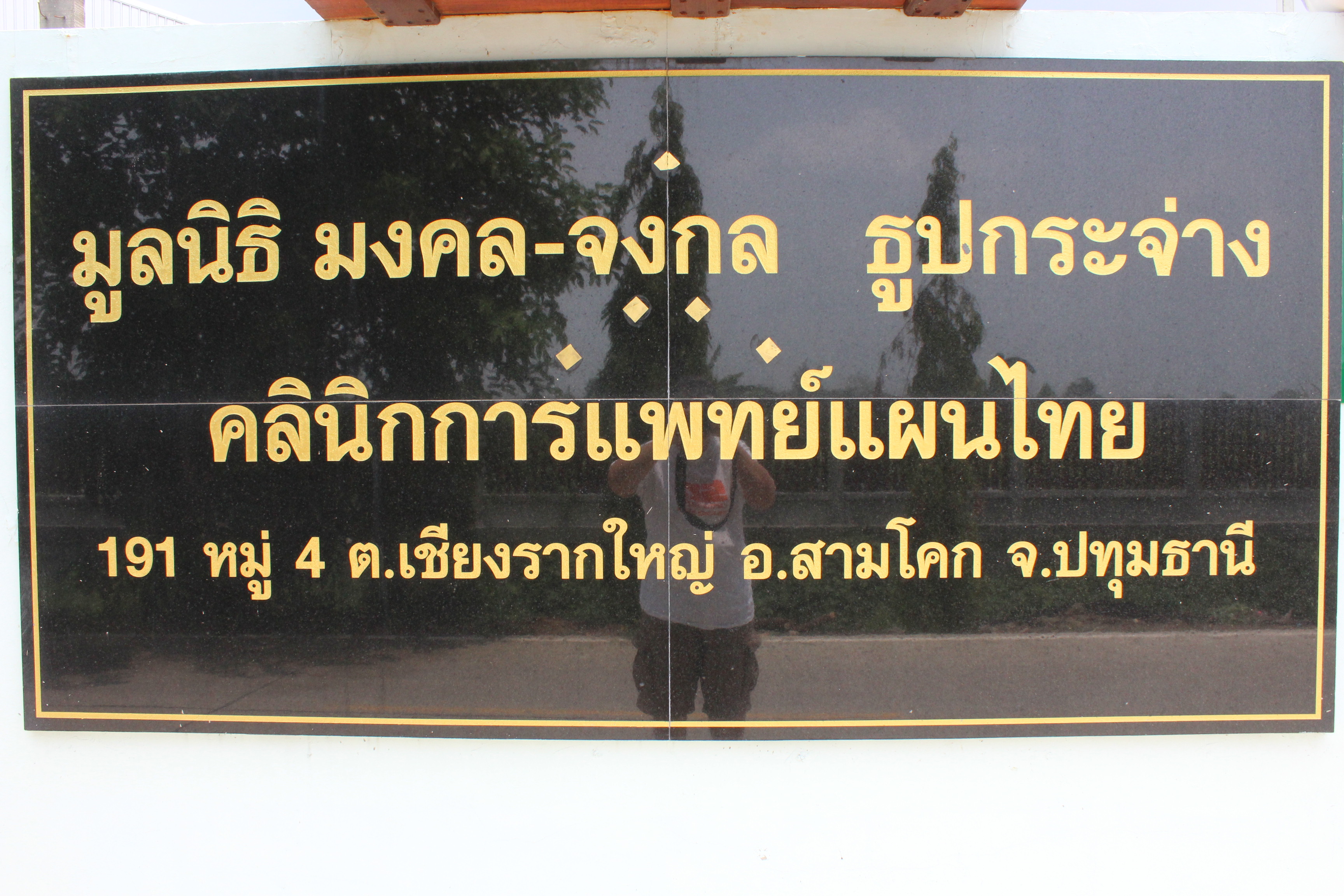 ป้าเหมียวได้ไปรักษาที่คลีนิคการแพทย์แผนไทยซึ่งตั้งอยู่ที่มูลนิธิ มงคล-จงกล ธูปกระจ่าง ด้วยอาการพังผืดยึด หลังผ่าตัดเนื้องอกชนิดโตไวเต้านมขวาเมื่อปลายปี 57 แขนขวายกไม่ขึ้น ข้อเข่ามีปัญหา นิ้วโป้งขวาล็อค ร่างกายหยุดนิ่งนานเมื่อไหร่จะเกิดอาการปวดเมื่อเริ่มเคลื่อนไหวทันที ได้รับความทุกข์ทรมานมานานนับสิบปี หลังจากที่เข้ารักษาครั้งแรกก็มีอาการดีขึ้นแขนขวายกได้สุดแขน นิ้วล็อคอาการดีขึ้น การเดินขึ้นลงบันไดอาการปวดทุกข์ทรมานลดลงมาก วิธีการรักษานี้ไม่ใช่การฝังเข็ม พล.ต.ท.คำรณวิทย์ ธูปกระจ่าง ท่านผู้บริหารมูลนิธิและเป็นคุณหมอที่ลงมือรักษาเองกล่าวว่า “เป็นการเปิดผิวหนังครอบอบสมุนไพรเพื่อดูดเลือดเสียออกให้เลือดดีไหลเวียน”